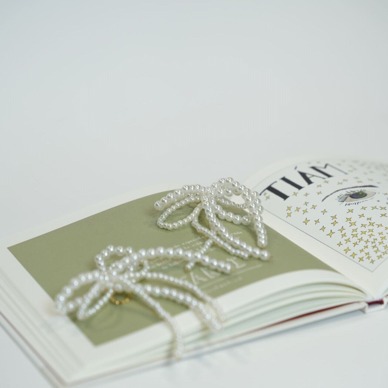 こちらのribbon pearlは、紐を解くことなく取り付け可能となっております。